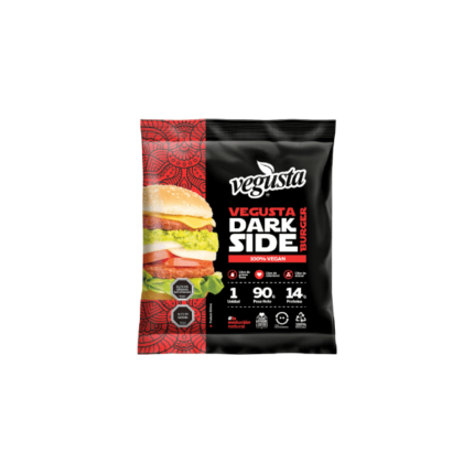 Hamburguesa vegana hecha 100% a base de proteína de plantas. Vegana, sin gluten, sin soya, sin colesterol, libre de grasas trans.Formato: 5 unidades (450 gramos).Marca: Vegusta.Ingredientes: Proteína texturizada de arveja, proteína aislada de arveja, proteína de chia, fibra de arveja, sal, ajo en polvo, pimienta blanca, saborizante grill (maltodextrina de maíz, extracto de levadura, sabor idéntico al natural, dióxido de silicio amorfo, cebolla), colorante rojo (ponceau) 4R, metilcelulosa, aceite vegetal de coco, manteca vegetal de palma.
