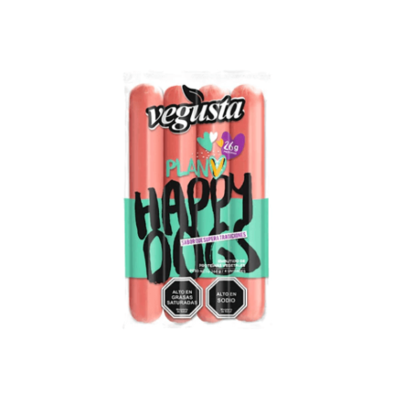 Embutido de proteinas vegetales.  100% Plant Based.Formato: 4 unidades (260 gramos).Marca: Vegusta.Ingredientes: agua filtrada, proteína de trigo (glute), proteina aislada de arveja, manteca vegetal de palma, aceite de canola, lecitina de girasol, palmitato de ascorbilo, sal, levadura nutricional, sabor natural e idéntigo al natural, metilcelulosa, humo líquido, colorante rojo (Ponceau)4R.