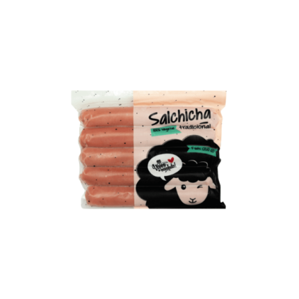 Salchichas 100% vegetales tradicionales a base de proteínas de soya y trigo.Formato: 200 gramos (5 unidades).Marca: No Vives de Ensalada.Ingredientes: Agua, proteína aislada de soya, proteína de trigo, sal, saborizante idéntico al natural, ajo, dextrosa, colorante: carmoisina y goma guar. Contiene soya y gluten.