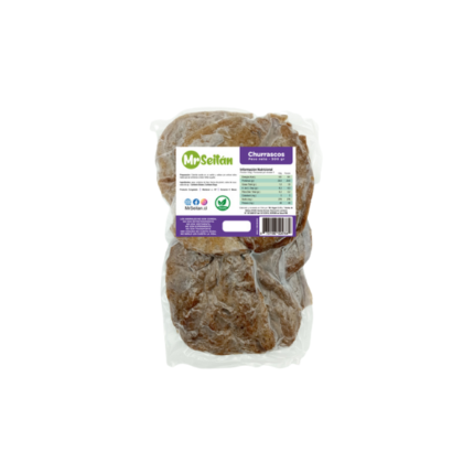 Seitán tipo churrasco.Gramos: 500Marca: Mr SeitánIngredientes: Agua, Harina de gluten, Salsa de soya (agua, poroto de soya, sal, harina de trigo, caña de azúcar, color caramelo, glutamato monosódico, inosinato disódico, guanilato disódico, sorbato de potasio, benzoato de sodio), Salsa de ajo (agua, vinagre, ajo, maltodextrina, sal, azúcar, almidón de maíz modificado, goma xantan, dióxido de titanio, saborizante natural, sorbato de potasio, benzoato de sodio, goma guar). Contiene gluten y soya.